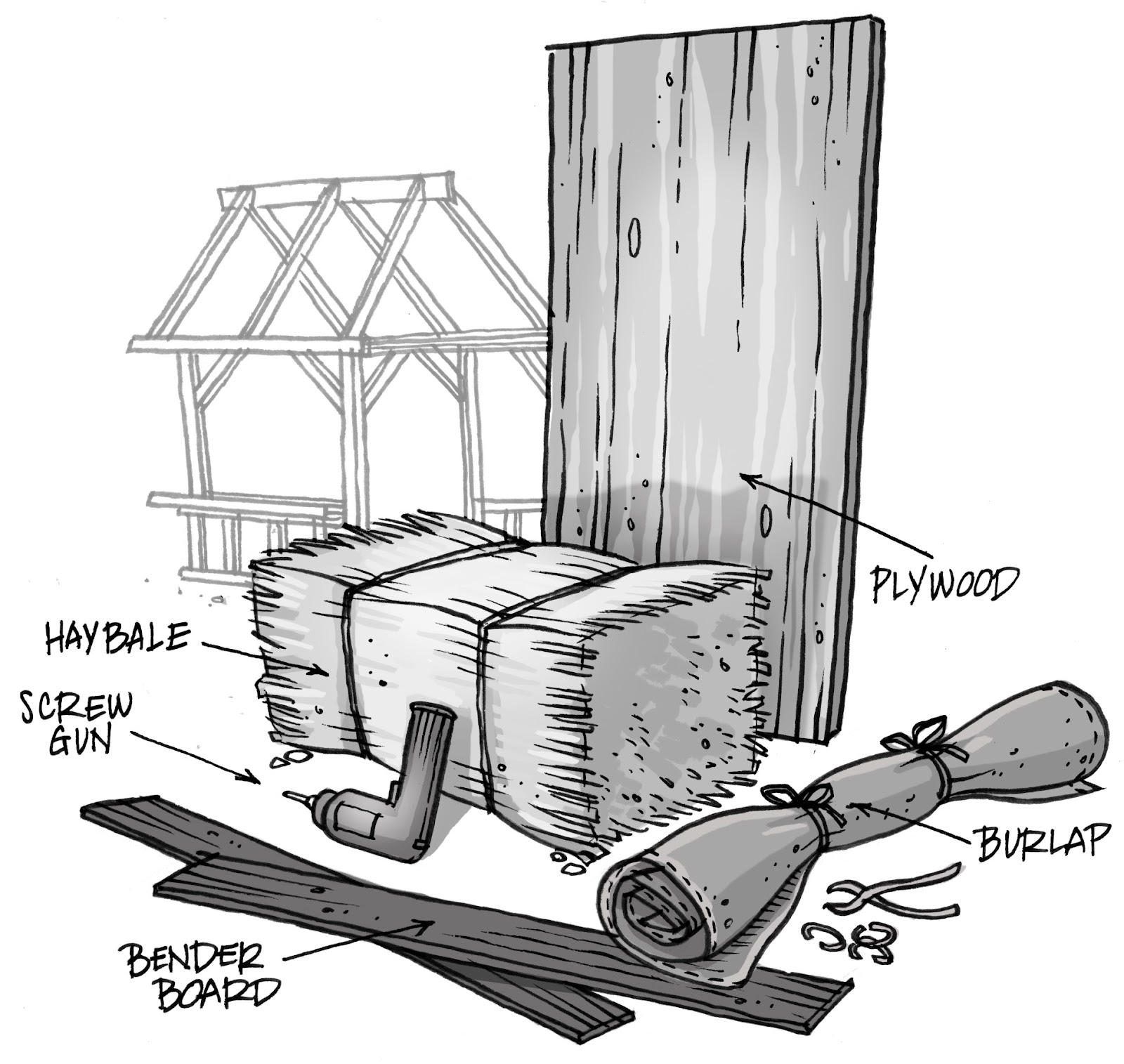 BUILDING HISTORY OUT of PLYWOOD, BURLAP & HAY BALES
